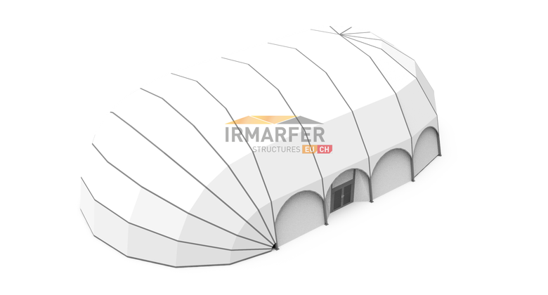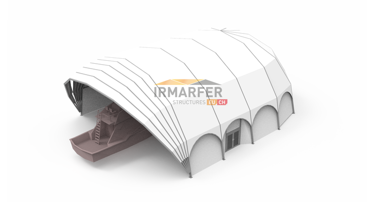 Die spezielle Form dieses Hallensystems eigener sich hervorragend für Gebiete mit höheren Windlasten (Meer) und fügt sich ideal in die ohnehin zumeist limitierte Fläche in Häfen, Marinas ein.